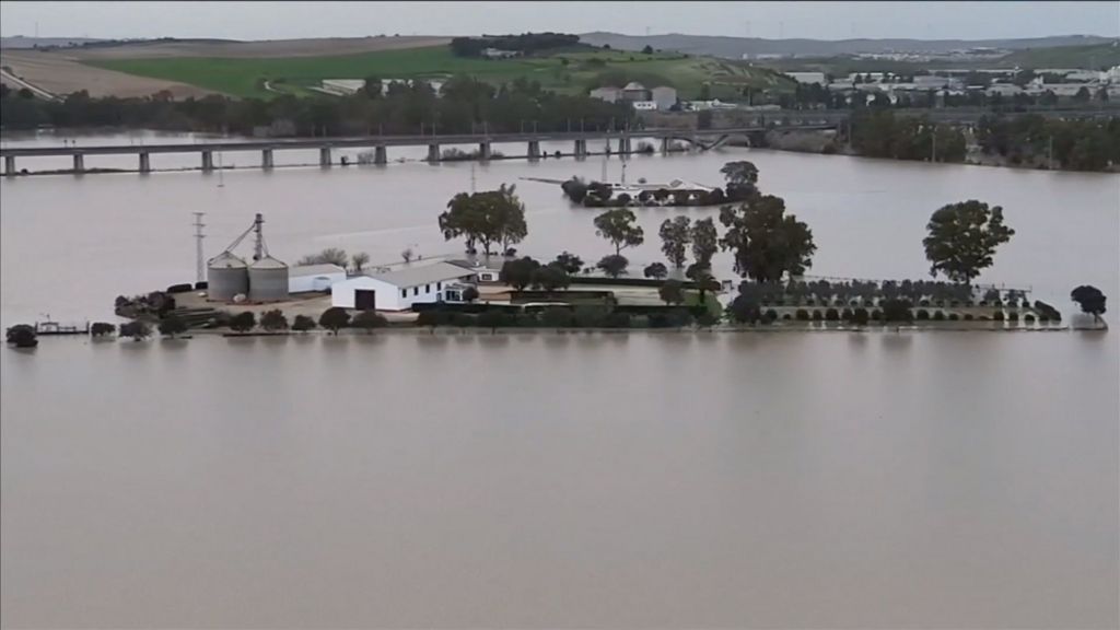 Aerial footage shows flooded cities as storms hit Spain
