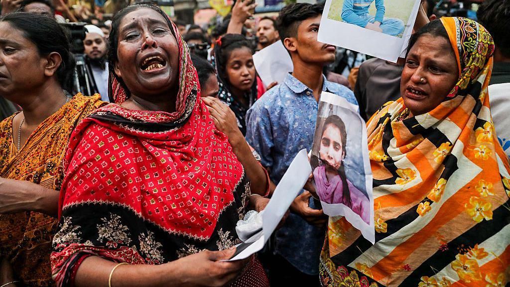 A devastating fire engulfed a garment factory in Dhaka, Bangladesh, claiming the lives of at least 16 individuals, with fears that the death toll may escalate. The inferno, which erupted around midday on Tuesday, ravaged the four-storey building in the Mirpur area, leaving bodies charred beyond recognition. Distraught families gathered outside the factory, clutching photographs of their missing loved ones, desperate for answers. The blaze was extinguished after three hours, but a neighboring chemical warehouse continued to burn, complicating rescue efforts. Firefighters struggled to contain the chemical fire, which persisted until late evening, fueled by hazardous materials such as bleaching powder, plastic, and hydrogen peroxide. Authorities are yet to determine the origin of the fire, with investigations underway to ascertain whether the warehouse was operating legally. The factory and warehouse owners remain unlocated, adding to the uncertainty. Among the grieving is a father searching for his daughter, Farzana Akhter, who remains missing. ‘I just want my daughter back,’ he pleaded, encapsulating the anguish of countless families affected by this tragedy.
