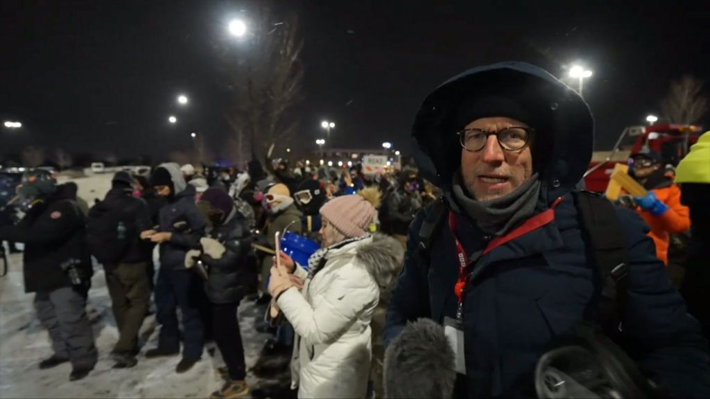 BBC at protests outside hotel where Trump’s immigration chief believed to be staying