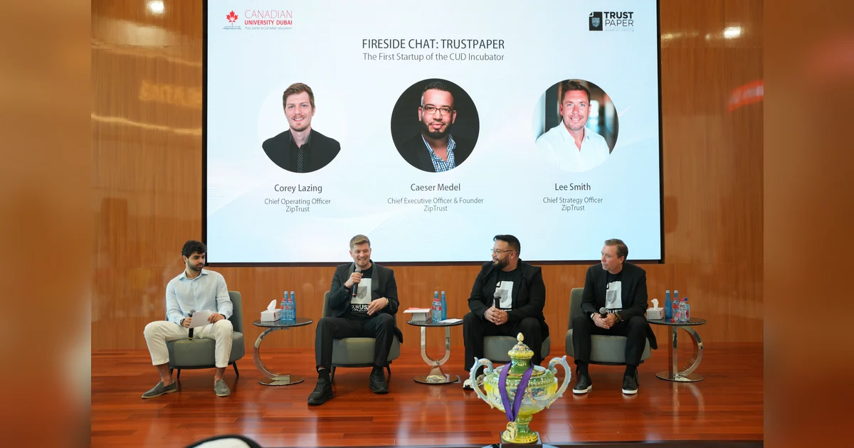 Canadian University Dubai (CUD) has unveiled TrustPaper, the first patented start-up to emerge from its business Incubator, marking a significant milestone in document security and authenticity. Powered by ZipTrust, a blockchain-enabled technology, TrustPaper introduces a revolutionary solution that allows for the secure and automatic verification of documents within seconds. This innovation integrates Near Field Communication (NFC) and copyright protection technology directly into academic credentials, enabling instant verification via QR codes or NFC chips using mobile devices. This eliminates the risk of forgery or tampering while ensuring seamless validation. Additionally, TrustPaper stores a digital twin of documents on the blockchain, ensuring lifelong access and security. As part of CUD’s commitment to sustainability and social impact, 25% of the venture’s royalty proceeds will be allocated to an endowment fund supporting equality in education. TrustPaper was officially launched under the brand promise ‘Authenticity You Can Hold’ at the CUD Hub in Dubai City Walk. The event featured a panel discussion with Prof. Karim Chelli, CUD’s president and vice chancellor, and a fireside chat with TrustPaper’s founders. Prof. Chelli emphasized the university’s role as a catalyst for innovation, fostering collaboration to address real-world challenges. Caeser Medel, CEO and founder of ZipTrust, highlighted the project’s alignment with Dubai’s vision for progress and innovation, underscoring the role of technology in building trust and empowerment. TrustPaper also aligns with the United Nations Sustainable Development Goals, particularly in advancing Quality Education, Industry, Innovation and Infrastructure, and Peace, Justice, and Strong Institutions. By bridging traditional paper-based documentation with cutting-edge technology, CUD aims to promote equitable access to secure academic credentials worldwide.