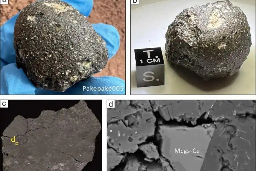The mineral was extracted from Pakepake 005, the 44-gram spherical lunar meteorite recovered by Chinese researchers in 2024 from the Taklamakan Desert, located in Xinjiang Uygur Autonomous Region. The stone’s dark outer fusion crust, a signature feature of meteorites formed when friction superheats the rock’s surface during its high-speed passage through Earth’s atmosphere, confirmed its extraterrestrial origin before detailed analysis began.