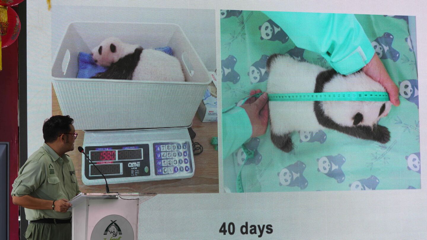 Veterinary specialists at the West Java facility reported substantial physiological advancements in the 40-day-old cub. Senior veterinarian Bongot Huaso Mulia confirmed, “The panda cub demonstrates exceptional health indicators with a 46% weight increase and 95% length expansion over the past month.” The examination footage captures Rio’s transformation from a pink newborn to a fur-covered cub developing characteristic black-and-white markings.