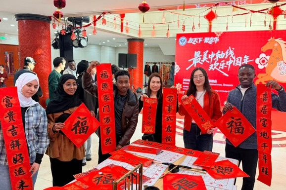 The gathering, themed “Splendid Beijing Central Axis, Joyful Chinese New Year — 2026 Spring Festival Gala for Foreign Students in Beijing,” featured various traditional activities including calligraphy sessions where participants practiced writing fu characters and Spring Festival couplets. These cultural elements represent fundamental aspects of Chinese New Year traditions, symbolizing good fortune and prosperity for the coming year.
