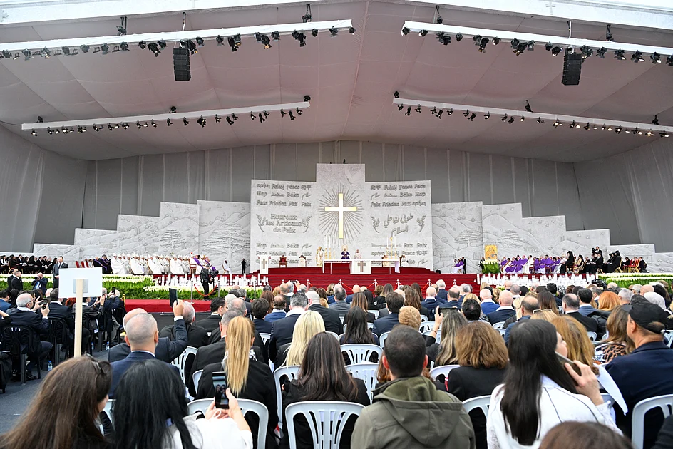 Earlier in his visit, the Pope received an enthusiastic reception from thousands of Lebanese youth at Bkerke, headquarters of the Maronite Church. He implored the young generation to harness their enthusiasm to ‘change the course of history’ and build ‘a new future’ for their beleaguered nation.