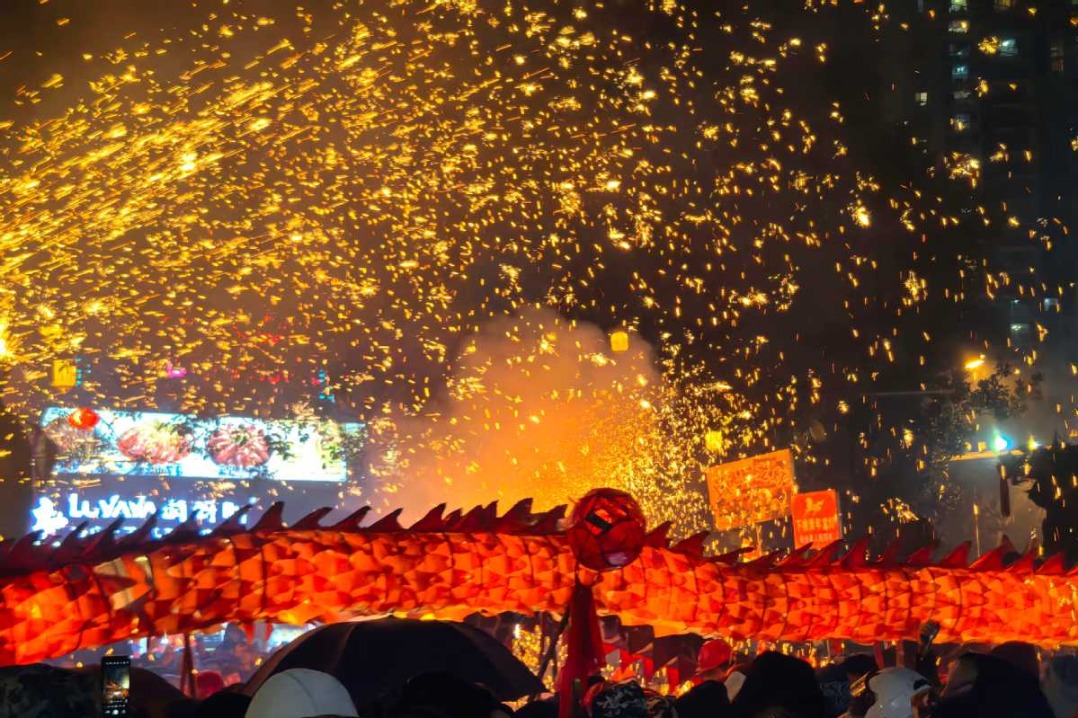 The ancient town of Taijiang in Guizhou Province transformed into a spectacular arena of light and sound on Tuesday as Miao ethnic communities celebrated the Lantern Festival with their traditional fiery dragon dances. Against the night sky, more than sixty brilliantly crafted dragons weaved through narrow streets and bustling alleys, each massive creation carried by teams of 50 to 100 participants.