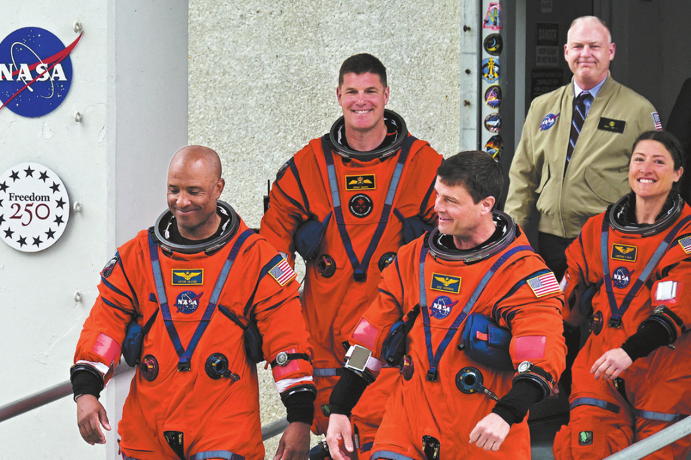 Carrying four astronauts from two nations, the 322-foot Space Launch System heavy-lift rocket roared off Launchpad 39B at 6:35 p.m. Eastern Time, carrying the Orion deep-space crew capsule atop its frame to begin a landmark 10-day lunar flyby expedition. The international crew includes three NASA astronauts — commander Reid Wiseman, pilot Victor Glover, and mission specialist Christina Koch — alongside mission specialist Jeremy Hansen from the Canadian Space Agency, who walked to the astronaut transport van for their trip to the launchpad as crowds of aerospace officials and spectators watched.
