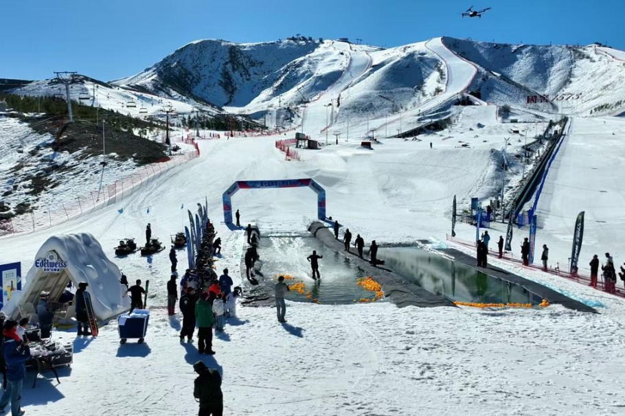 Mao Xiaoshuai, a visitor who traveled from the southwestern city of Chengdu, Sichuan province to join the event, described the experience as unforgettable. “Combining the speed of downhill skiing with the playful fun of splashing through water makes for a totally unique rush,” he explained in an interview on Sunday. “You get the best of both winter and early spring all in one run, and it’s the perfect way to let go of all the stress that’s built up over months of work.”