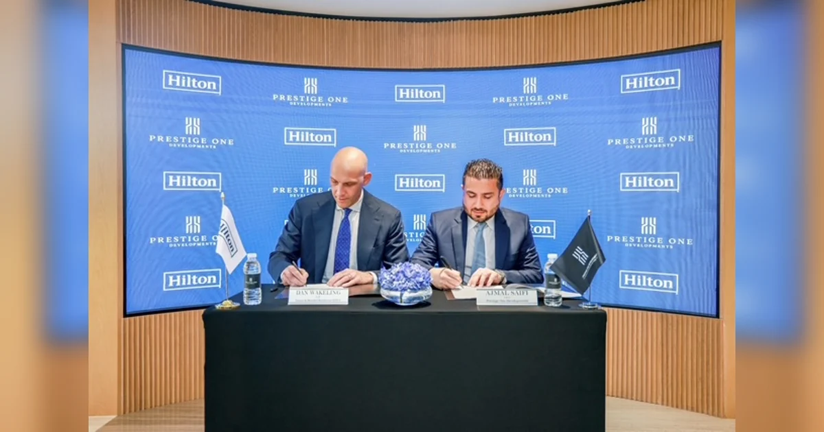 In a landmark collaboration, Prestige One Developments has joined forces with global hospitality giant Hilton to introduce the first waterfront standalone branded residences under the Hilton Hotels & Resorts brand in the Middle East and Africa. The agreement, signed in Dubai, was attended by key executives from both entities, including Sulaiman Saifi, Vice Chairman, and Ajmal Saifi, CEO of Prestige One Developments, alongside Hilton’s Daniel Wakeling, Vice President of Development Luxury & Residential, EMEA, and Feras Hasbini, Managing Director of Development Branded Residences, EMEA.