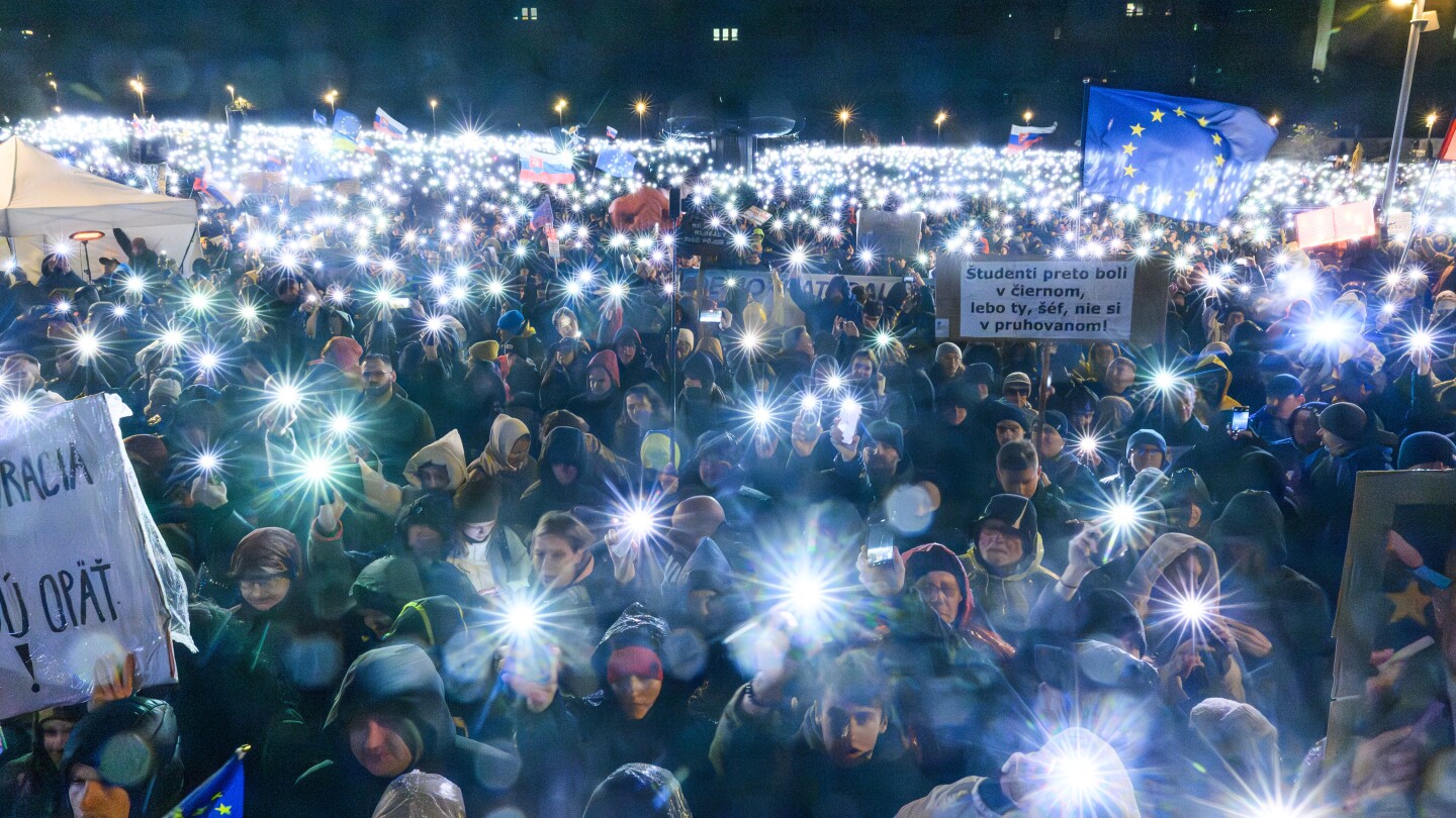 In a significant display of public dissent, tens of thousands of Slovaks took to the streets on Monday to protest against Prime Minister Robert Fico and his pro-Russian policies. The demonstrations coincided with the anniversary of the 1989 Velvet Revolution, which marked the end of communist rule in the former Czechoslovakia. Rallies and marches were held across dozens of communities, with the largest gathering in Bratislava’s Freedom Square, where protesters chanted slogans such as “We have enough of Fico,” “We want a change,” and “Resign.”
