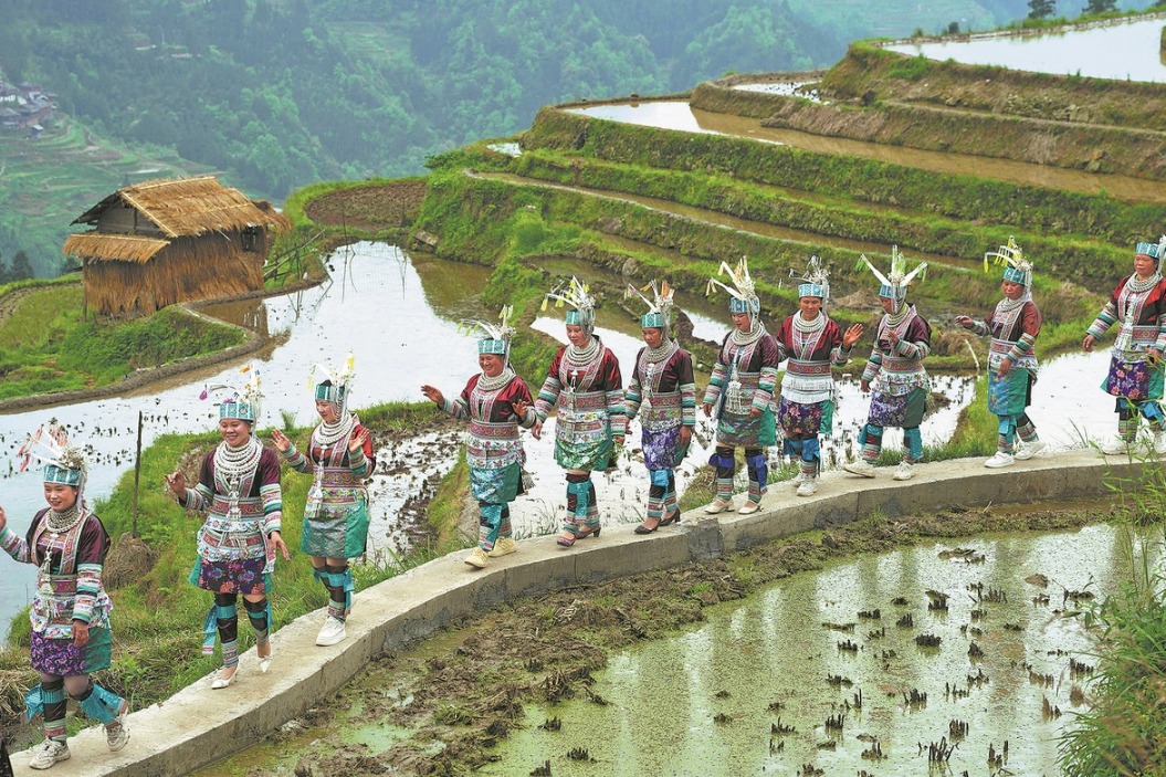 Nestled among the rolling green terraces of Congjiang county in Southwest China’s Guizhou province, hundreds of villagers clad in vibrant traditional ethnic attire gathered on Sunday to celebrate the annual Kaiyang Festival, the traditional ceremonial kickoff to the annual rice-planting season that has sustained communities in the region for generations.