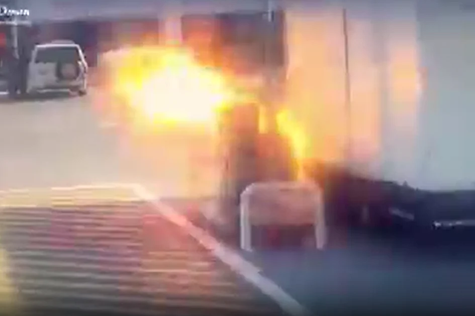 The incident unfolded without warning as a truck was refueling at the station. Dramatic footage circulated by authorities captures the terrifying moment when the tank erupted, immediately engulfing a nearby man in flames. The video shows the victim desperately running while completely covered in fire.
