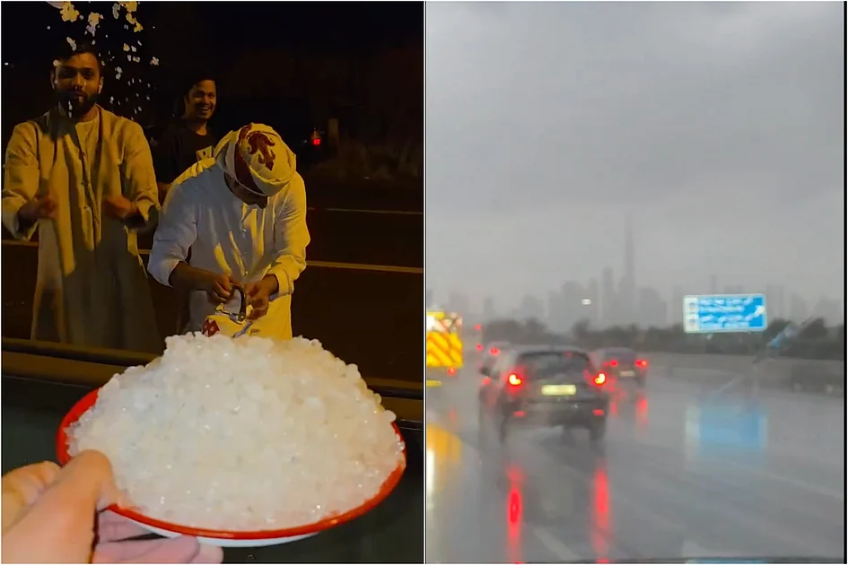 An extraordinary winter weather phenomenon captivated residents across the United Arab Emirates on Monday morning as rare hailstorms and rainfall transformed the typically arid landscape. The northern emirate of Ras Al Khaimah became the epicenter of this meteorological event, with social media platforms flooded with videos showing steady hailstones descending upon the region. In one particularly joyful clip, groups of men were seen embracing the unexpected weather, laughing and playfully engaging in hail-throwing exchanges.